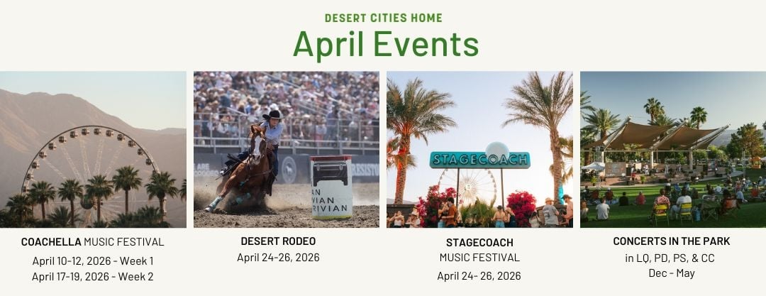 From internationally recognized music festivals to local art shows and family-friendly concerts, April truly showcases the unique lifestyle that makes living in the Coachella Valley so special. Whether you’re a full-time resident, seasonal visitor, or considering making the desert your home, this is the month where everything comes alive.