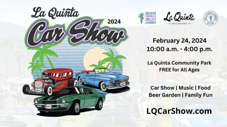 Start your engines and get ready for the 17th Annual La Quinta Hot Rod and Custom Car Show on March 24th, 2024. Brought to you by the Greater Coachella Valley Chamber of Commerce in partnership with the City of La Quinta, this event will be held at La Quinta Community Park located at 77-865 Avenida Montezuma. Entertainment, food, drinks, and a beer garden will be available at this family-friendly event. The event will be open from 9:00 AM to 3:00 PM and is FREE to attend as well as FREE parking.