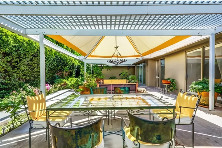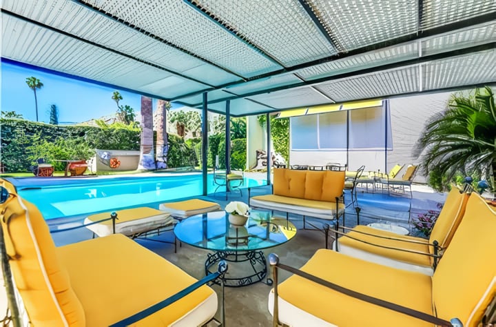 This home is a step back in time! And perfect for midcentury modern fans who were able to stay in this home as a vacation rental. With an extensive outdoor entertainment area and the living room’s 14-foot ceilings with floor-to-ceiling windows, this home evoked the history and esthetic every modern enthusiast thinks of when coming to Palm Springs.