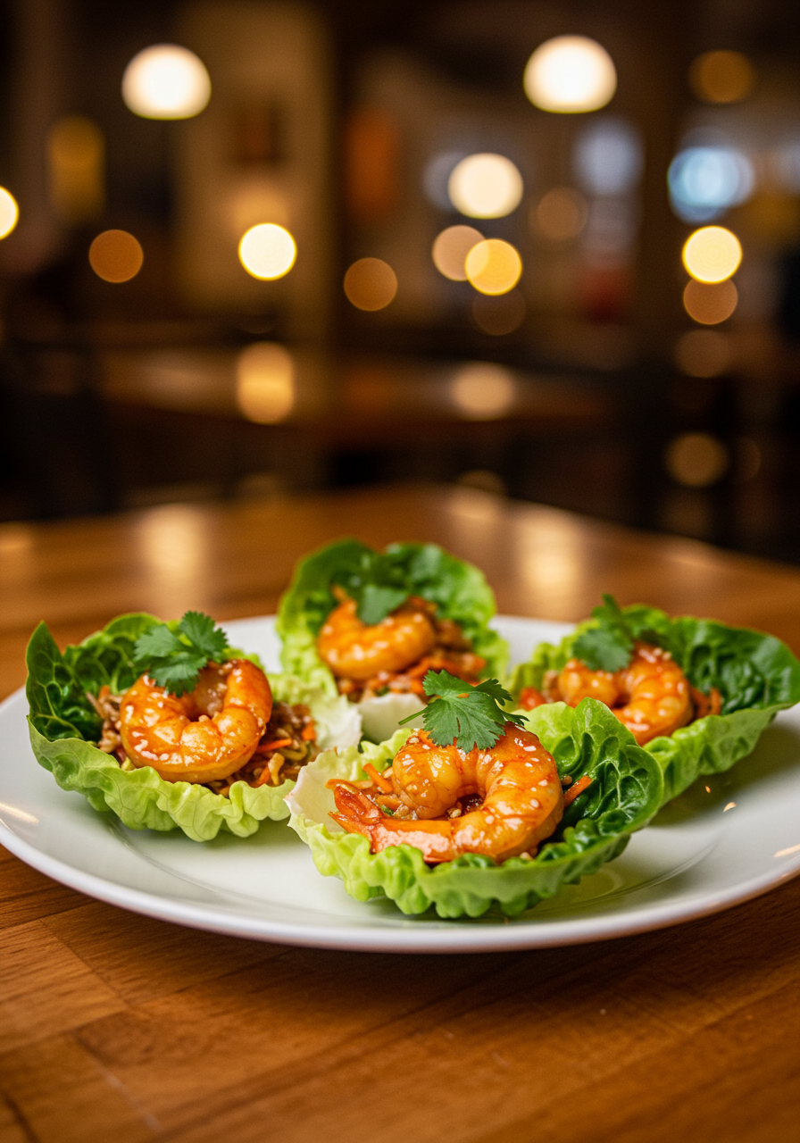 Shrimp, Sweet & Spicy Chili Glaze, Sesame Seeds, Chives