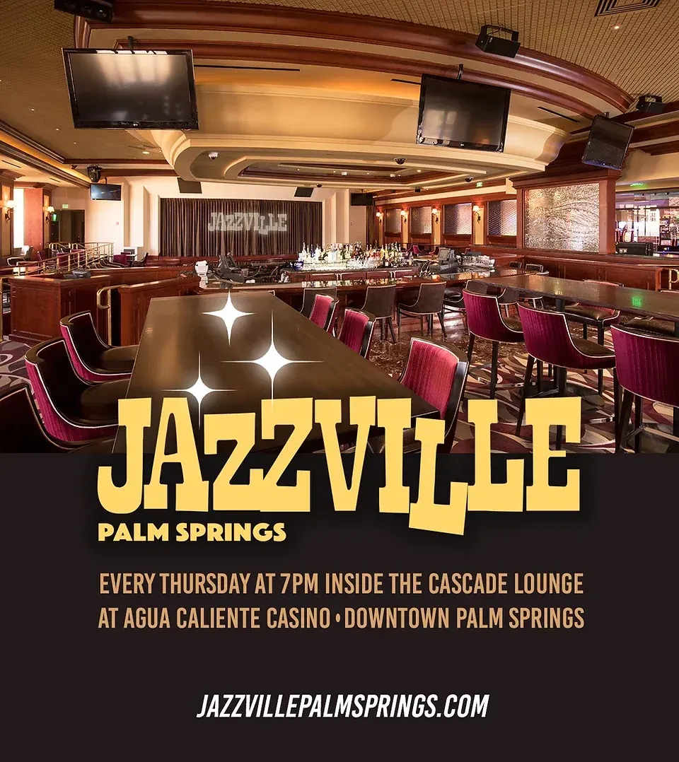 Inside Agua Caliente Casino, Jazzville offers straight-ahead, be-bop, swing, vintage and Latin jazz, neo-soul, and special shows featuring a variety of arts from comedy to burlesque. They are constantly selling out of tickets and a wonderful location to enjoy live jazz of all sorts!