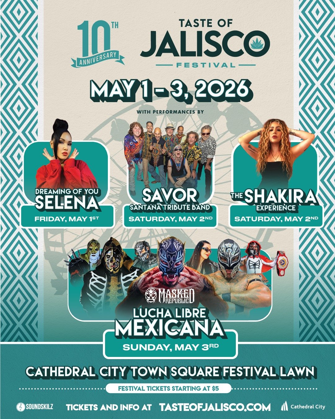 Highlights include Selena and Santana tribute performances, a Shakira-inspired show, and exciting Lucha Libre wrestling.
