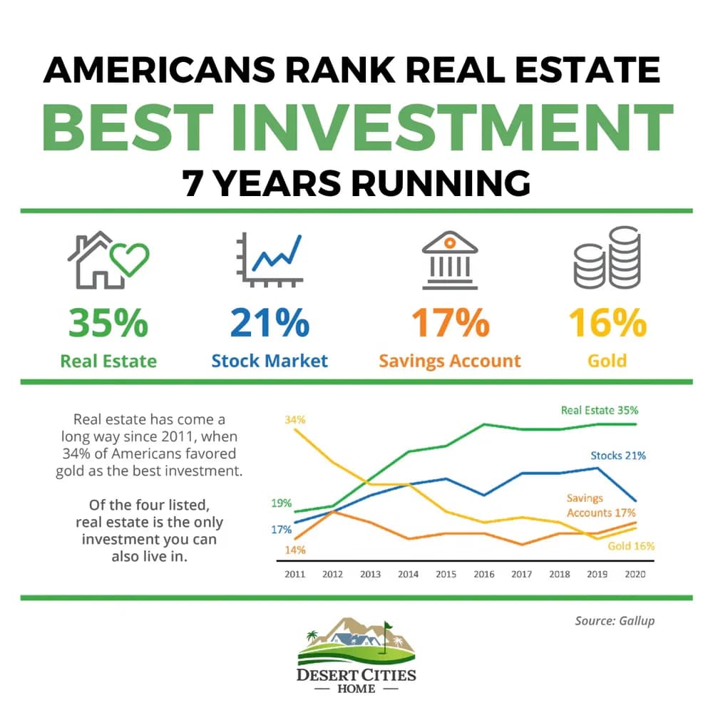 Real estate has outranked stocks, savings accounts, and gold as the best long-term investment among Americans for the past 7 years.